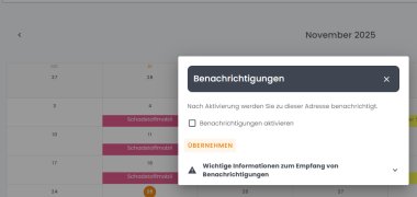 Beim nächsten Öffnen der App wird direkt der Kalender der gewählten Liegenschaft angezeigt.Benachrichtigungen für mehrere Liegenschaften anlegen: